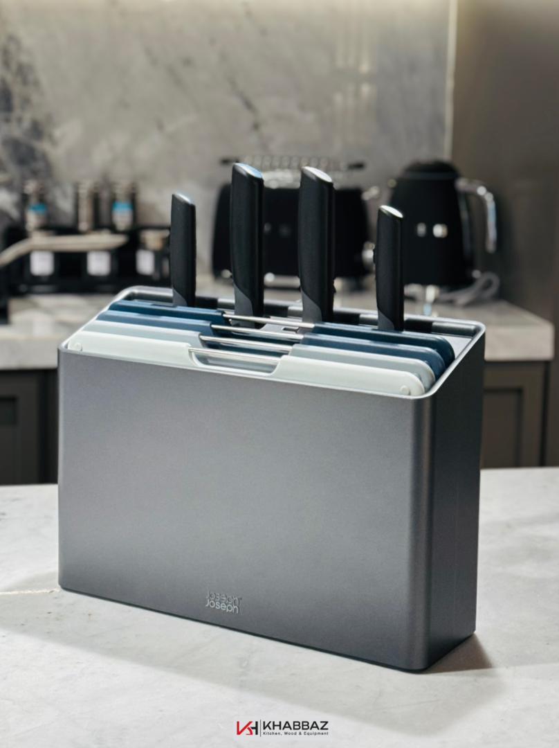 علاوه بر تخته برش 4 عدد چاقو اشپزخانه در سایز های مختلف هم دارد که برای انواع برش ها از حمله برش نان استفاده میشود.