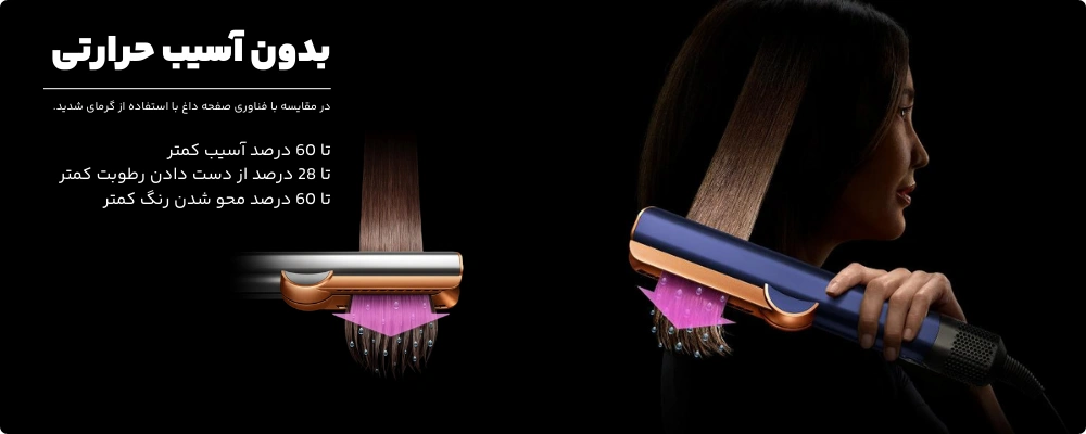 فناوری اختصاصی هوای کنترلشده دایسون، دما را در محدودهای امن حفظ میکند و از تماس مستقیم صفحات داغ با مو جلوگیری میکند. این ویژگی، بهویژه برای موهای رنگشده، کراتینه یا آسیبدیده، یک مزیت بزرگ است و باعث حفظ درخشندگی و لطافت مو میشود.